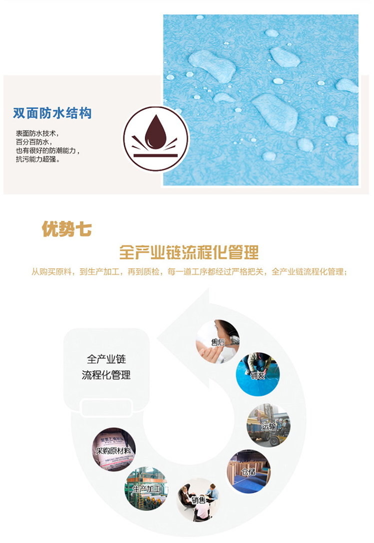 在生产过程中将高强度分子高压喷涂在表面,表面更加平整,抗污能力比普通PU滚涂处理工艺高6倍强度。